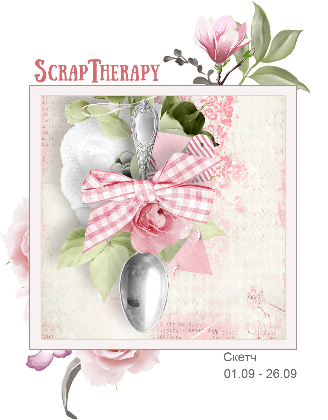 Обложку на блокнот я делала по скетчу от Scraptherapy "Скетч сентября". В блоге сейчас так много интересных заданий, что глаза разбегаются....